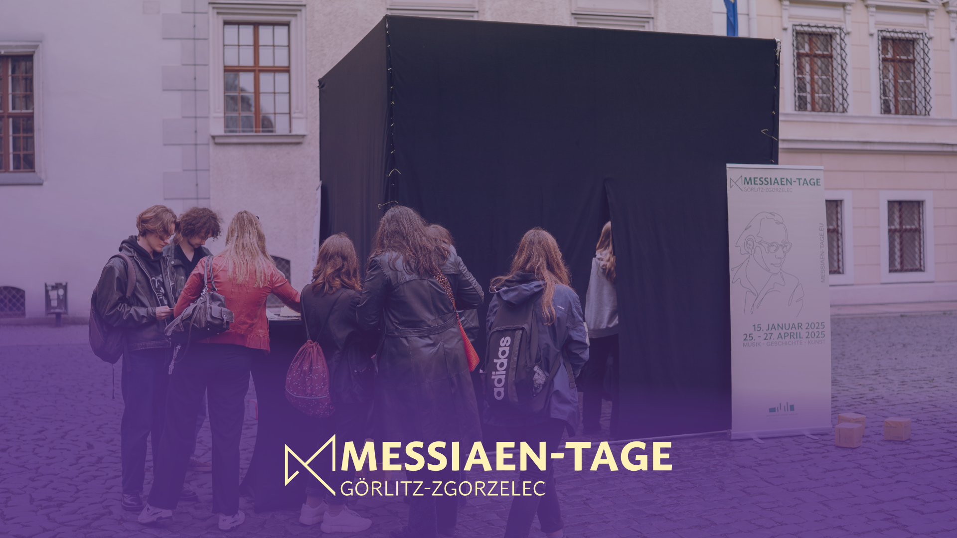 Besucher:innen sind eingeladen, spontan mit Beteiligten des Festivals in Kontakt zu treten, Fragen zu stellen und Einblicke in die Messiaen-Tage zu gewinnen, während die Ausstellung selbst Hintergründe zum Festival selbst, der Person Messiaen und zur Gefangenschaft im Stalag VIII A Görlitz liefert.